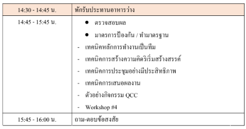 - เรียนรู้ขั้นตอนการแก้ไขปัญหาผ่านการระดมสมอง (Small group activity) ด้วยกลุ่มคุณภาพ QCC